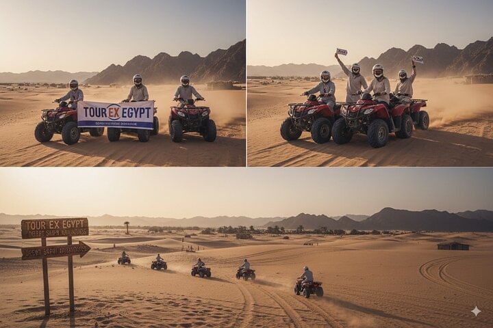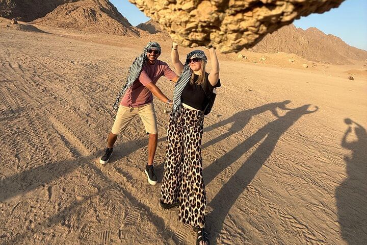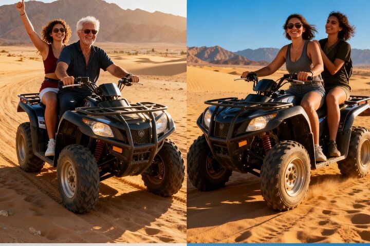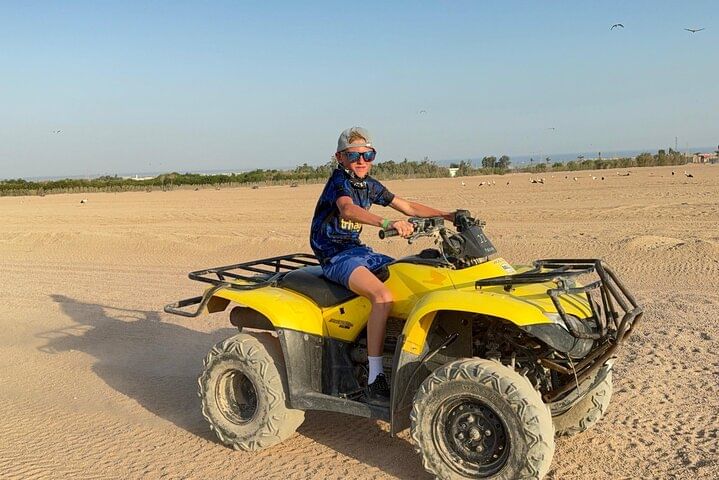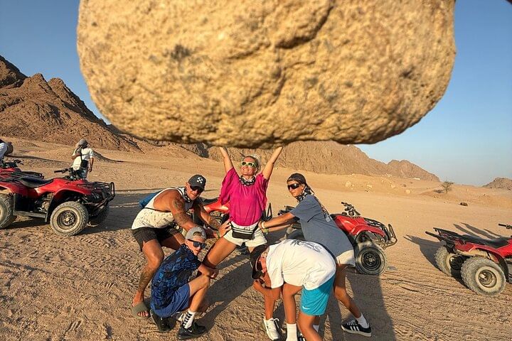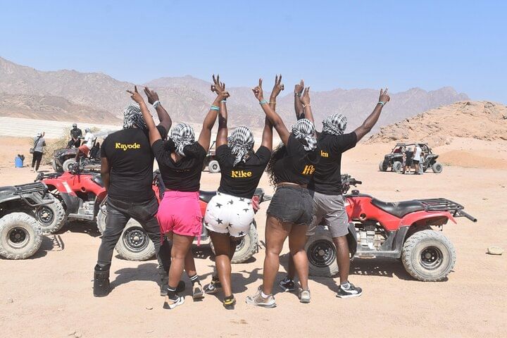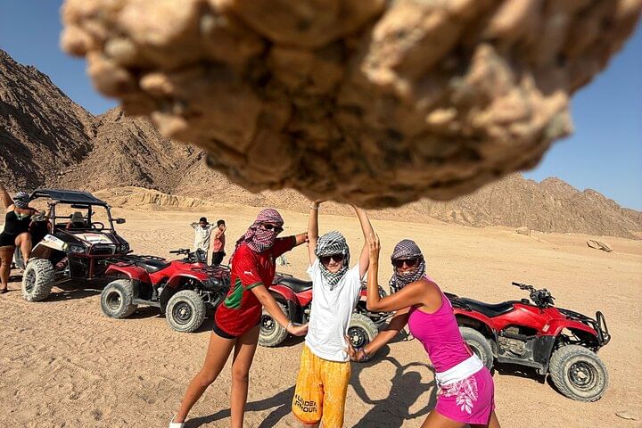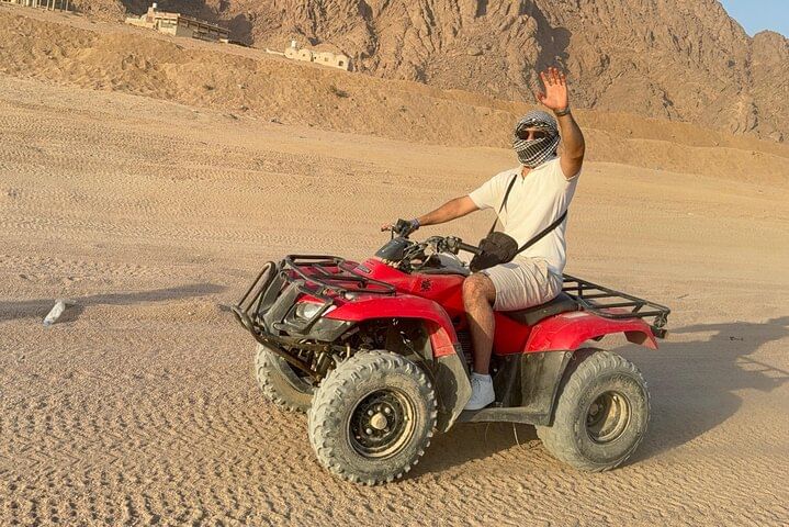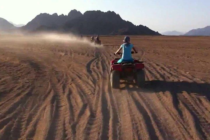 Explore the Magic of Red Sea Desert by Quad bike tour from Sharm El Sheikh. Relax, drink Bedouin tea, and experience the Bedouin lifestyle before heading back through the sand dunes to the starting point.