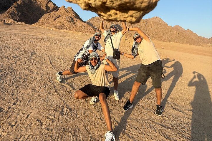 A fantastic adventure that all the family can join together to cross the Sinai desert with 2 hours of quad bike from Sharm el Sheikh at sunrise or sunset trip and enjoying a Bedouin tea to drink.