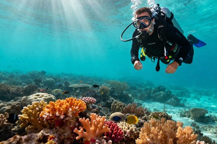 Discover the underwater world of Tiran Island on this beginner-friendly diving day trip.